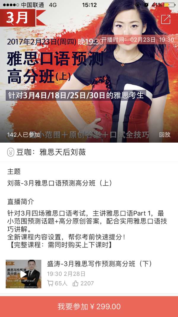 去年11月开始,红豆Live就与小站教育开始初步合作,小站教育合伙人兼副总裁刘薇在红豆Live进行雅思口语的付费+免费直播授课。