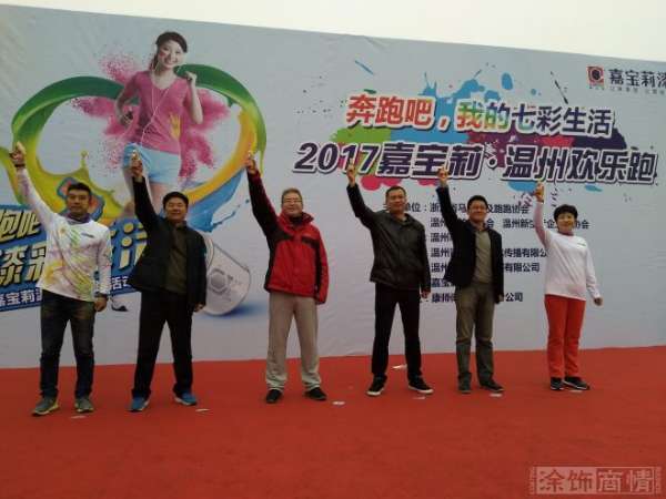 省市体育局和马拉松协会的相关领导出席当天活动的启动仪式。嘉宝莉家装漆事业部温州销售负责人王旭代表嘉宝莉为欢乐跑活动致辞。浙江省体育局副局长李华,温州市体育局局长张志宏,浙江省体竞赛管理中心主任、浙江省马拉松及路跑协会会长龙江,浙江省体育局体育经济处副处长王振璋,嘉宝莉家装漆事业部王旭,温州青鸟体育文化传播有限公司董事长、温州马拉松协会主席钱玫云几位领导共同为活动鸣枪开跑。