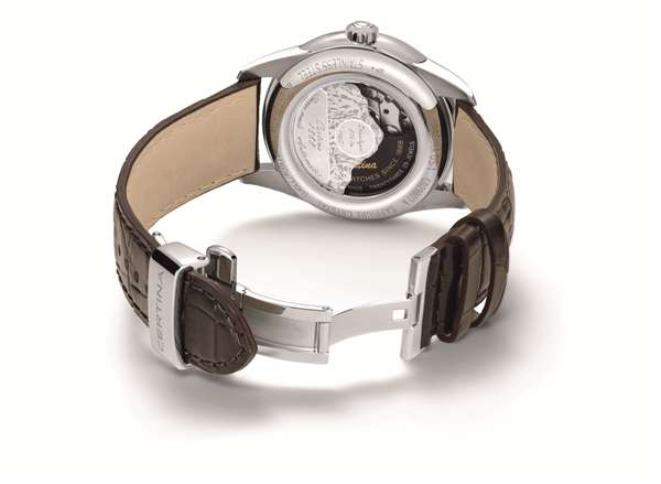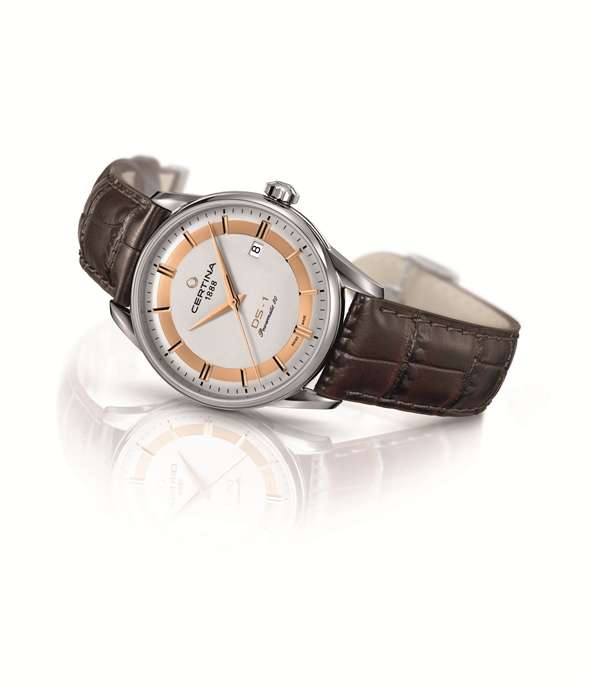 协调感。在两面均经过防眩目涂层处理的蓝宝石水晶玻璃表镜下,是优雅的白色珍珠贝母表盘,表盘上的罗马数字和镀镍指针均为黑色,两相对比,何尝不是另一种别样的视觉平衡。6点钟位置处设有日期窗口,清晰易读。正如表冠顶端的首字母缩写“DS”所示,DS Podium Lady自动表采用了CERTINA的DS (双保险) 技术,因此可以说,该腕表是永恒经典风格与当代尖端制表技艺的超凡融合。DS Podium Lady自动表防水能力可达10巴 (100米)。有多种不同款型可选。