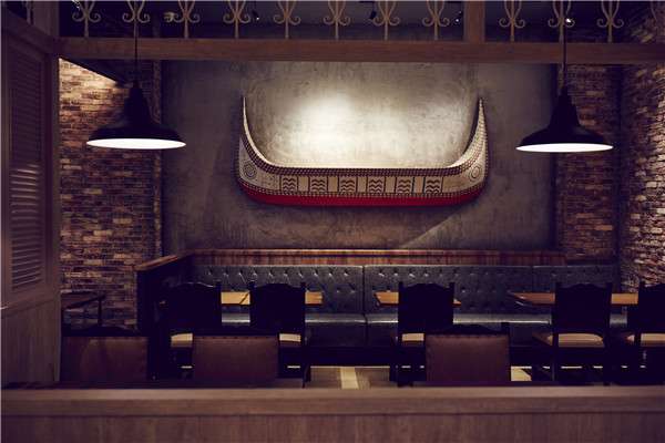 悬于墙上的是台湾原住民极具民族特色的船,展现了勤劳的人民依山傍水的生活环境…