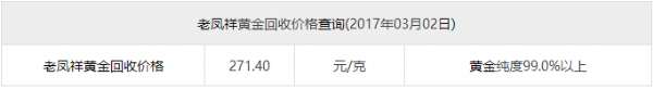 今日老凤祥黄金回收价格最新官方报价,今日老凤祥黄金回收价格最新多少一克(2017年03月02日)参考价格。