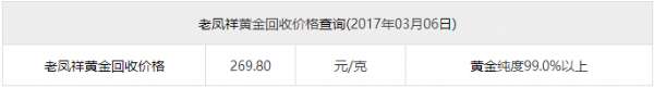 今日老凤祥黄金回收价格最新官方报价,今日老凤祥黄金回收价格最新多少一克(2017年03月06日)参考价格。