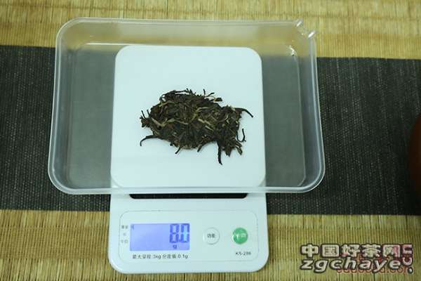 称取8g的干茶,用于开汤品评。撬取茶样的时候,尽量保持