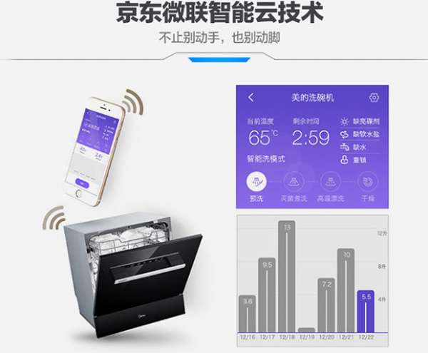 智能判断餐具脏污程度,自动匹配洗涤模式,让洗碗更简单;连接智能微连APP,手机远程遥控,随时随地掌控洗碗状态,选择程序,进行智能洗碗,同时水耗、能耗用量也能查看,体验多种吸毒乐趣。