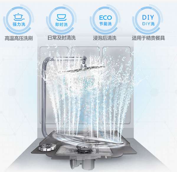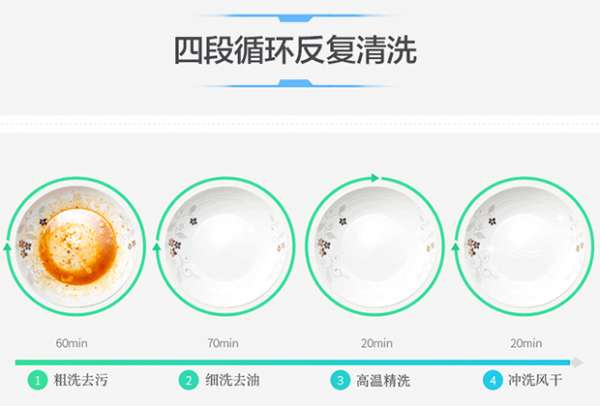 中式洗涤系统,双层刀锋喷臂,旋喷劲洗重油餐具,四种洗涤方式应有尽有,适用于各种餐具类型,立体喷淋,洁净加倍;70℃热水冲洗,边冲洗边加热,能快速彻底分解油脂,温度不会过高,可以起到保护餐具的作用,运用四重循环反复洗,高温溶油污、除菌。
