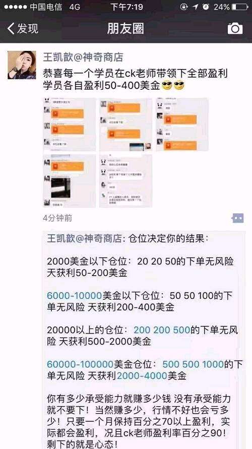 17岁辍学创业、一帮VC追投的95后神奇百货CEO王凯歆,在经历裁员、倒闭风波后,近日有网友晒出了她的朋友圈,她开始做微商了,教学员做外汇资金盘。
