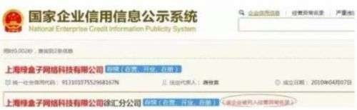 而据工商注册系统显示,上海绿盒子网络科技有限公司徐汇分公司已被列入到经营异常名录,做出决定的是上海市徐汇区市场监督管理局,决定日期是:2016年7月6日。