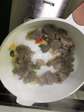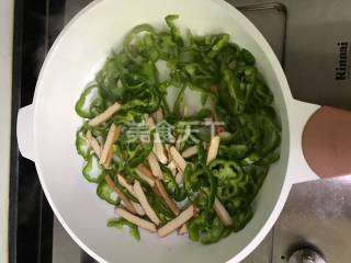 放色拉油,倒入青椒,翻炒一分钟放香干