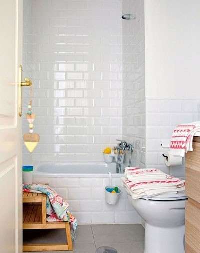 卫生间的设计采用一贯的清新风格,白色的墙砖将整个卫生间映衬的洁净十足,小小的卫生间也是亮点多多。