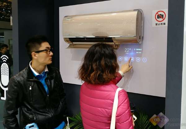 在“空气未来”展厅的概念性立式空调以“圆”为主打元素构成的空调一改以往我们对立式空调肥厚笨重的印象,变得如同高档音响一样纤薄且富有质感;此外还有非常吸睛的智能空调可以通过语音唤醒进行人机互动,从而完成空调的基本功能,如调温度、控制风速、恒温、关闭等之外,还能够通过网络连接查询实时天气,机票出行等相关便民信息,十分具有创意。