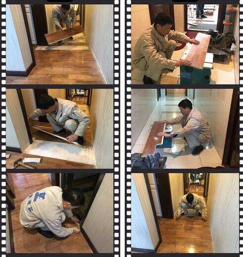 在聊天的时候,郑师傅也没停下手里的活,拆地板,锯边线,贴封口胶,粘贴扣条和脚线……一气呵成。据说,自师傅从事地板安装行业以来,安装、维修过的客户已有上千家,技术在学习和探索中不断成熟。现在的郑师傅对地板维修,可谓是轻车熟路。