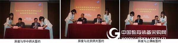 在会议的第二天,异度云教育与华中师范大学、北京师范大学、上课啦教育在现场进行了战略合作签约仪式。此次签约仪式,更是专家学者及高等学府对我们异度云教育的肯定、信任,愿与我们建立良好、长久的合作关系。