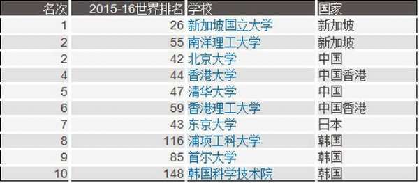 新华网北京6月21日电 英国教育杂志《泰晤士报高等教育》20日公布了2016年亚洲大学排行榜。新加坡国立大学拔得头筹,新加坡南洋理工大学和北京大学并列第二名,香港大学和清华大学分别位列第四和第五名。