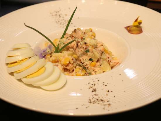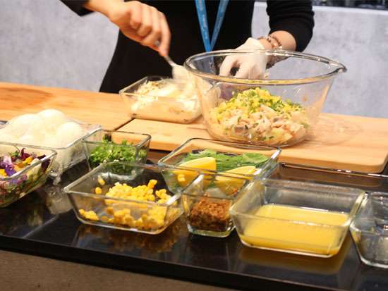 不一会功夫,大厨又做出了一道土豆蔬菜沙拉,ps:土豆是西门子iQ700系列嵌入式微波烤箱和蒸汽烤箱提前蒸制好的,笔者离老远就闻到了,清香四溢!