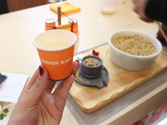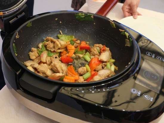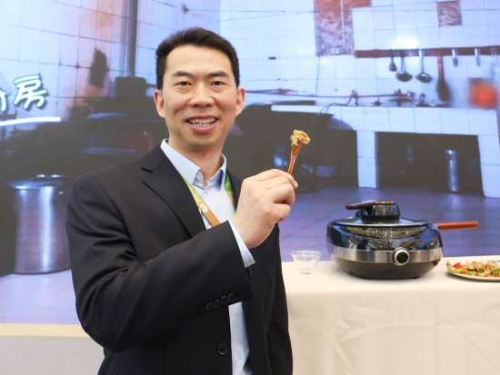 土豆蔬菜沙拉制作过程 其间,大厨还为我们介绍了这款烤箱,西门子iQ700系列嵌入式微波烤箱和蒸汽烤箱搭载了“家居互联”功能。通过手机上的“家居互联”应用程序,用户可随时查看和操作烹饪电器,远程操作。西门子iQ700系列烤箱和蒸箱还特别搭载了为中国消费者量身定制的烹饪食谱。用户只需在“家居互联”应用程序上选择心仪的菜肴,应用程序即刻将相应食谱传输至烤箱或蒸箱。只需放入烹饪食材,设备便可启动自动烹饪,帮用户省去来回设置程序和温度的烦恼,轻松坐享多种美食,该产品无疑让各位吃货朋友省了不少心,轻松秒变大厨! 土豆蔬菜沙拉完成 看完、吃完这几道硬菜,咱是不是再去寻找点其它美食!紧接着笔者闻着香味来到了九阳的展台! 刚来小编还很纳闷,只闻其味,不见其人,这到底是谁在做饭?定睛一看,原来是九阳最新推出的这款炒菜机器人自己在做饭!这酷炫新品简直亮瞎了我的眼球,不用人手翻炒,只需几分钟就能独立完成炒红烧肉的制作,真是厉害厉害! 本以为只有小编好这口,在九阳的展台上我竟然看到了一个熟悉的背影,我大家电网的吕老师也来了,请问吕老师您是不是也是闻着香味找来哒!好了,话不多说,赶紧让我们专业的美食评审给品鉴一下吧!吃完一口,只见咱吕老师连连点头!可见这款九阳智能炒菜机还真有两下子! 吃了这么多,赶紧找点喝的顺顺吧!小编非常自觉的来到了苏泊尔的展台,展台上,苏泊尔为观众准备了豆浆、果汁等饮品,真心贴心啊! 吃完喝完,小编想贱贱的说一句此次AWE之旅“我很满意”,不仅见识了酷炫的厨电产品,还品尝了各种美味,心里甚是满足!
