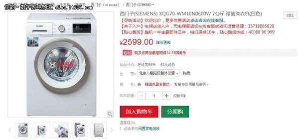 推荐理由:西门子的这款洗衣机外观亮丽,性能出色。高品质原装变频压缩机、触控的便捷操作,高温自洁功能和对敏感人群的关爱呵护,足以说明这是一款高品质的洗衣机。