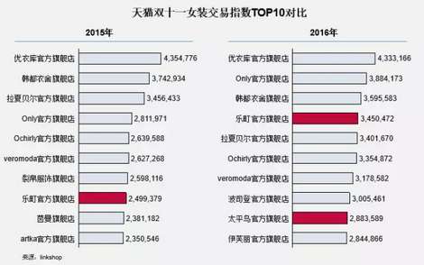 结合90后年轻客群的购买行为,未来乐町除做强SKU外,在渠道布局中需要怎样借势购物中心与电商的增长,平衡单位销售贡献与多渠道成长是个关键。当然,刚刚过去的2016年双十一,乐町在天猫的旗舰店以1.65亿元的单日销量冲进天猫女装类目的Top5(下文详述),其线上的发力成长亦值得肯定与关注。