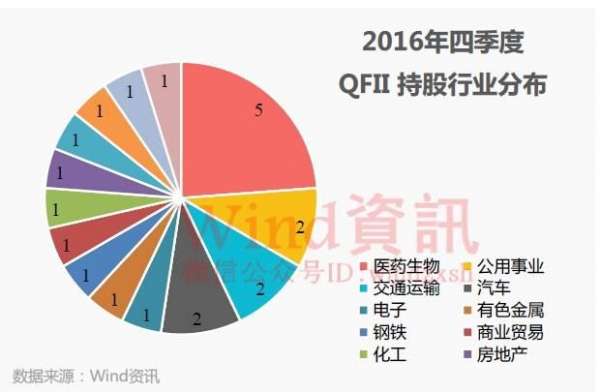 分行业看,医药生物(爱基,净值,资讯)板块最受QFII青睐,四季度QFII重仓流通股中,有5只属于该板块,此外,汽车、交通运输、公用事业板块均有2家公司入围。