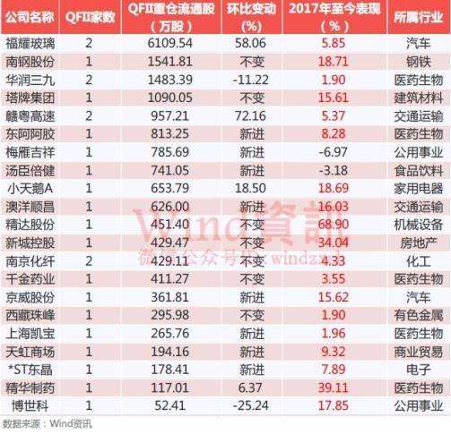 具体来看,去年四季度QFII新进东阿阿胶(行情000423,买入)、梅雁吉祥(行情600868,买入)、汤臣倍健(行情300146,买入)、澳洋顺昌(行情002245,买入)、京威股份(行情002662,买入)、上海凯宝(行情300039,买入)、天虹商场(行情002419,买入)、*ST东晶(行情002199,买入)等8只个股,增持小天鹅A、精华制药(行情002349,买入)、赣粤高速(行情600269,买入)、福耀玻璃(行情600660,买入)等4股,微幅减持1股、其余7股持股数量未变;此外,有5只个股有两家QFII机构入驻。其中福耀玻璃、华润三九(行情000999,买入)、赣粤高速、南京化纤(行情600889,买入)较受外资青睐,均被两家QFII共同持有。