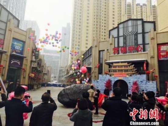 3月14日,站在乌鲁木齐市某广场一块大“陨石”旁的小伙刘飞向女友王芳芳求婚。在大家的见证下,女孩答应小伙的求婚。市民刘女士说:“我只见过用戒指求婚的,拉着这么大的石头来求婚,有生以来第一次见。”