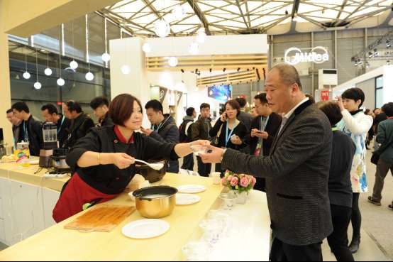 当然,除了炫酷的新品发布与高科技的产品展示,美的生活电器还将趣味活动融入展会,为现场观众带来中、日、法和意四国的美食课堂,其中更有为美国克林顿总统做过菜的大厨。他们现场制作四个国家的代表美食,更同步邀请了主播,在花椒、映客的“美的食色”频道、天猫“美的生活电器旗舰店”进行同步直播互动。这不仅让更多的美粉掌握了美食制作技巧,更为美的生活电器的产品做了很好的代言,强化了消费者对于品牌的认知度与好感度。