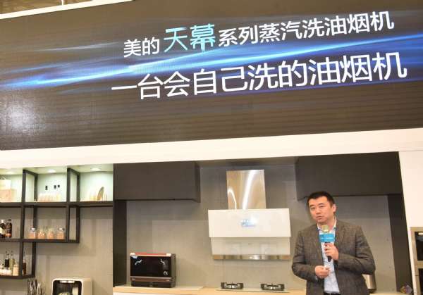 (图为美的厨电新品发布现场)