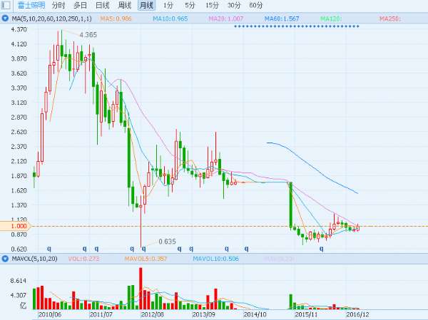 (雷士照明月K线图)
