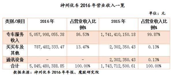专车业务烧钱还未暂告一段落,神州优车又开辟新业务。相比2015年营收几乎全部来自专车服务,2016年新增的买买车和其他业务为公司带来7.87亿元收入,占公司营业收入的13.47%,但同样烧掉8.39亿元,依然未能给公司带来净利润。