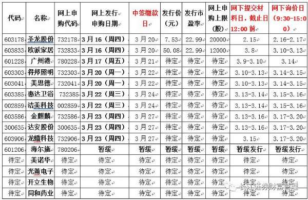 2、欧派家居(申购代码732833):拟发行4151万股,2017年3月16日网上申购,网上申购上限12000股。