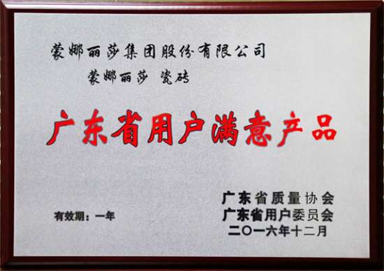 2016年12月27日,广东省质量协会在广州召开“2016年广东省质量管理活动总结大会暨第三十六次QC小组代表会议”。会上,由广东省质量协会、省总工会、团省委、省妇联、省科协等单位联合评选的“广东省用户满意产品”名录隆重揭晓,蒙娜丽莎集团旗下品牌产品“蒙娜丽莎瓷砖”与“QD瓷砖”凭借用户的对产品质量的信任和周到的服务水平,荣获“广东省用户满意产品”称号,其中,蒙娜丽莎瓷砖与QD瓷砖在广东省用户委员会的2016年满意度测评中的用户满意度分别为93分与82.3分。多年来,蒙娜丽莎集团严格把关生产环节,坚守质量承诺,不断加强与用户的深入交流,全面了解用户需求,不断对产品质量和服务进行改进和提高,持续提升客户信任和忠诚度,获得用户的广泛认可。早在2015年,蒙娜丽莎瓷砖与QD瓷砖已荣获“广东省用户满意品牌”称号。