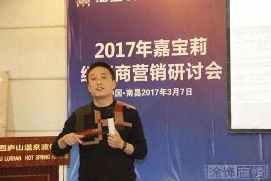嘉宝莉集团家装漆事业部营运副总谢锦州在会上作《学习.行动》的主题演讲,他首先从我们的经营环境、我们的经销商及我们面临的挑战几个方面就嘉宝莉家装漆销售现状进行分析。他指出,现在消费群体的年轻化,装修的个性化需求越来越明显,导致对我们的服务专业性要求越来越高,自营实体店不再是单纯展示产品卖产品的地方,更是与客户沟通和提供销售体验的多功能场所。如果我们不重视自营实体店的沟通体验功能,我们会发现这个店好象没有什么用了,因为顾客对一桶桶的产品没什么兴趣,更不要说有购买欲望了。这就要求嘉宝莉的经销商们要从灵魂深处开始转变,从当下开始行动!如果大家还是按现在的状况经营下去必死无疑,要把自己从现在的单一的产品提供者变成服务提供者,再成长为家庭装修方案的提供者。并希望经销商伙伴能跟着嘉宝莉,用好“培训宝”,学着去做家装解决方案解决者。我们追求的成功是:做顾客在遇到家装涂装问题时第一个想到求助的人!