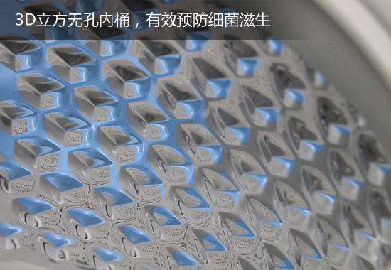 为解决洗衣机长期使用自身污染问题,该机采用“第三代i-clean智清洁水流系统”,创新龙旋风水流,犹如漩涡般由内至外深层冲洗,让洗衣机在工作同时也为自身“洗了个澡”。3D立方无孔?桶,不锈钢材质,细菌、霉菌无处附着,让洗衣机长期保持健康状态。