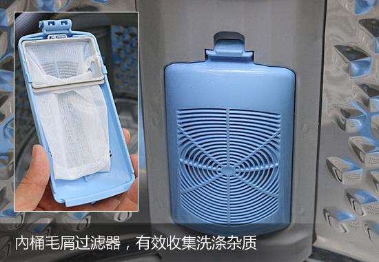 此外,该机?桶还配置了两个杂物过滤网,可过滤洗涤过程中产生的杂物和碎屑,清理也十分方便,有效降低衣物二次污染的风险。