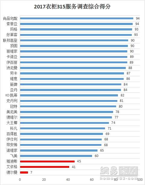 在这份新鲜出炉的报告中可以看到,尚品宅配在综合得分上遥遥领先,得到94分的高分排名榜首。同时尚品宅配在各分项的得分也尤为突出:在电商调查和微信调查的得分方面均居第一,其中微信调查更是取得了满分的傲人成绩。