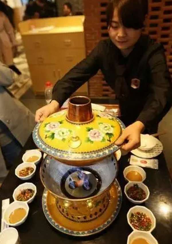 食材以绵羊为主,出肉量低、膻味小。刀工精美,可切得如纸一样薄。涮着吃、蘸小料是其特色。蘸料上深耕不断,如东来顺提供的主调料,以纯芝麻酱、酱豆腐、韭菜花、酱油、耗油 虾油、糖为主料,还辅以10多种辅料调和而成。