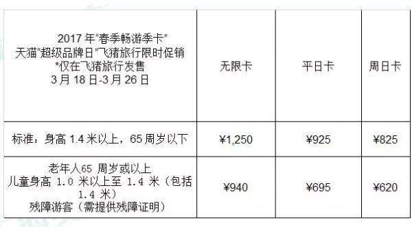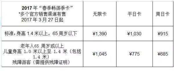 上海迪士尼乐园“春季畅游季卡”价格是多少?