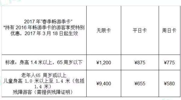 持有当前季卡的游客在续卡时可享受特别优惠。续卡的完整价目如下: