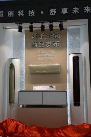3月10日上午,扬子空调在展台举行了主题为“智创科技·舒享未来”为主题的新品发布会,包括超一级能效v系列变频空调、5匹圆柱形柜机、厅吧等在内的新品与大众见面。中国家电协会副理事长王雷女士、上海海立(集团)股份有限公司副总裁彭真义先生、扬子空调有限公司总裁牛斌先生、扬子空调有限公司设计总监黄运勇先生等出席活动并致辞。