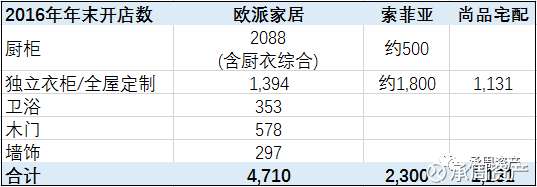 公司及索菲亚、尚品宅配门店数量比较: