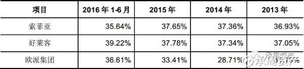 注:由于定制家居行业上半年收入占比40%左右,所以索菲亚2016年上半年净利润率偏低。