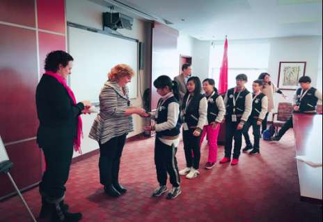 在优胜教育游学部的周到、专业的安排下,加拿大的欢迎仪式上,劳瑞尔大学教务长及国际部主任亲自接待,并一一授予孩子学校勋章表示欢迎,准备特色课程讲义,表达对中国学子在加拿大收获知识和快乐的祝愿;
