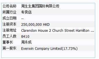截至2015年和2016年上半年,按历史汇率换算,周生生营业收入分别为160.59亿元、67.09亿元。