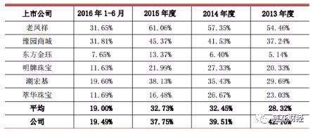不过,跟同业上市公司相比,周大生毛利率并不算高。