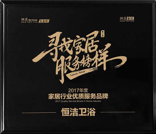 恒洁也因为标杆性的品质和服务,收获了来自方方面面的认可,并屡获各项大奖。在刚出炉的家居3·15服务调查报告中,恒洁在涵盖了家具、橱柜、卫浴、厨电、地板等10大品类227个品牌中脱颖而出,成为「2017家居行业优质服务品牌」:这正是行业和消费者对恒洁品质、服务的肯定和喜爱。