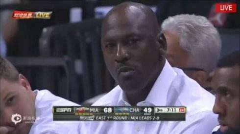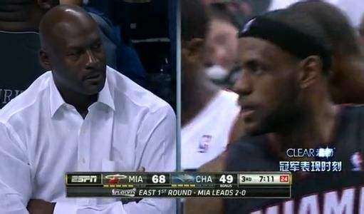 这是詹姆斯在季后赛首次碰上乔丹的球队,ESPN等媒体有关“詹姆斯在扣篮(微博)时怒瞪乔丹”的臆断遭到了詹姆斯的极力否认,他强调自己在扣篮时根本没有去看乔丹,不存在“挑衅”前辈。“绝对没有,”詹姆斯赛后毫不犹豫地说,“绝对没有去看M.J.(乔丹),我只是去努力观察麦克罗伯茨的动作,从他那儿断球,然后快速完成进攻,帮助球队继续领先。”