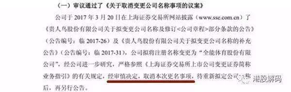 然而短短一天之后,贵人鸟股份有限公司再度发布公告,“经公司进一步研究,严格参照《上海证券交易所上市公司变更证券简称业务指引》的有关规定,经审慎决定,取消本次更名事项”。