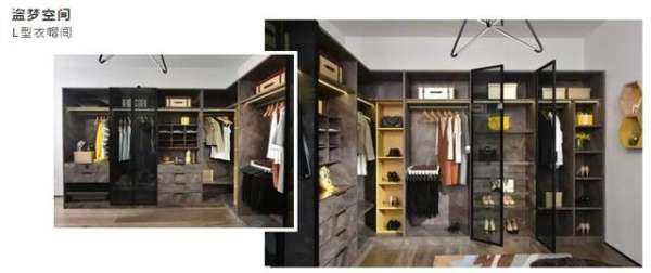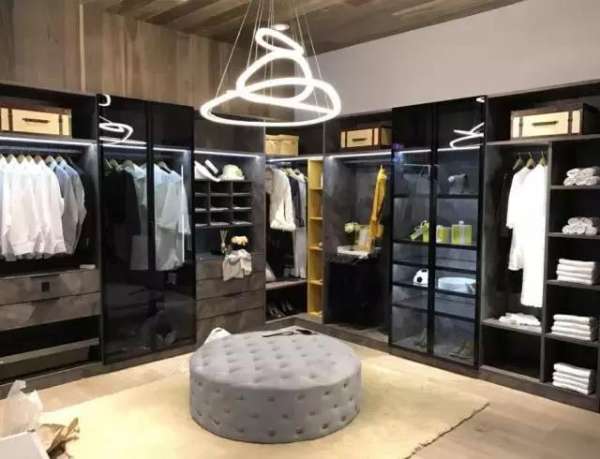 L型衣帽间给人一种稳重大方的感觉,盗梦空间使用岩石纹理外观与玻璃门的组合,于现代感中巧妙糅合自然意趣,走进这个衣帽间,就犹如进入梦境一般,如痴如醉,流连忘返。