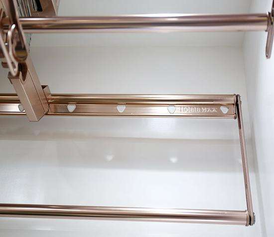 优质材质 晾衣机主要材质和伸缩托架为高定制航空铝材,表面采用高级阳极氧化处理,耐磨耐用;其中承重钢丝绳为国标304不锈钢,防锈防起毛刺;折叠片材质是304镜面不锈钢,强度更高,耐腐性更强;并且搭配16个名仕铝合紫金衣架,使用更加便利。