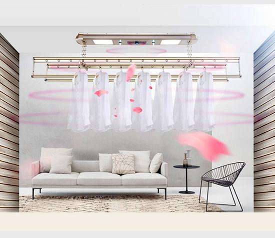智能晾衣机:好太太多年来一直致力打造智慧化的晾晒生活方式,洞悉衣物晾晒困扰、晾衣私密性以及家居环境对升降晾衣架的高品质要求,顺应推出了集消毒、风干、照明等多个功能的智能晾衣机。