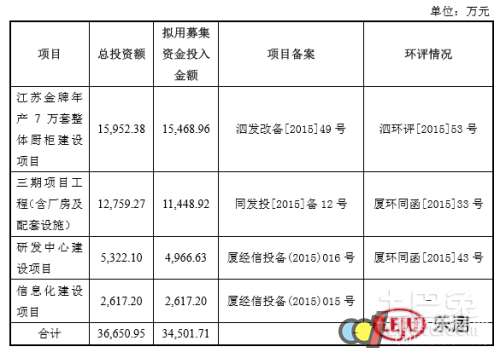 招股书显示,本次拟募集资金3.45亿元,用于“江苏金牌年产7万套整体厨柜建设项目”、“三期项目工程(含厂房及配套设施)”、“研发中心建设项目”、“信息化建设项目”。这将能提高金牌厨柜产能,并通过信息化的建设,产品营销、网点建设、后台信息系统的投入等方面,提高企业的工作效率。